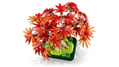 - Kolory jesieni — odzwierciedlające żywiołowość natury drzewko LEGO® ma czerwone i bursztynowe liście, a całość umieszczona jest w ciemnozielonej doniczce, co ułatwia wyeksponowanie rośliny